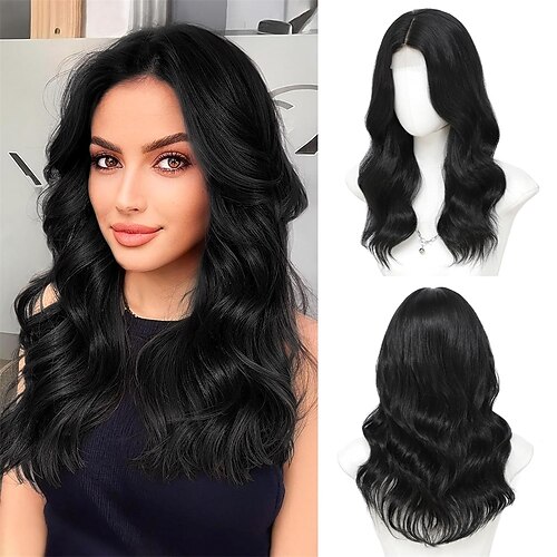 parrucca nera con frangia per donna parrucca di capelli lunghi ondulati parrucca nera parrucche sintetiche ricci ondulati per ragazze uso quotidiano per le feste
