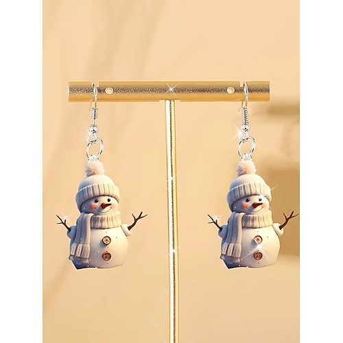 orecchini da donna a forma di pupazzo di neve in acrilico natalizio: design festoso con sciarpa e cappello, perfetti per le feste e per l'abbigliamento invernale