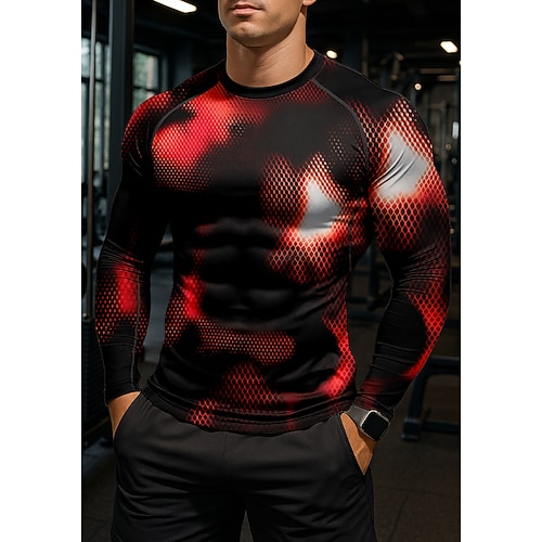 Per uomo Maglia a compressione Maglia da corsa Stampa 3D Manica Lunga Livello Base Gradiente di Colore Asciugatura Rapida Compressione Elasticizzato Traspirante Allenamento in Palestra Allenamento