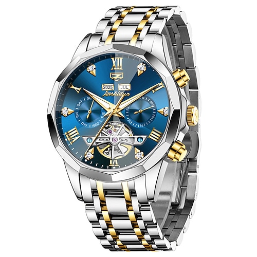 Orologio automatico da uomo olevs cinturino in pelle calendario quadrante scheletrato trend classics orologio da polso da uomo impermeabile moonswatch 7009