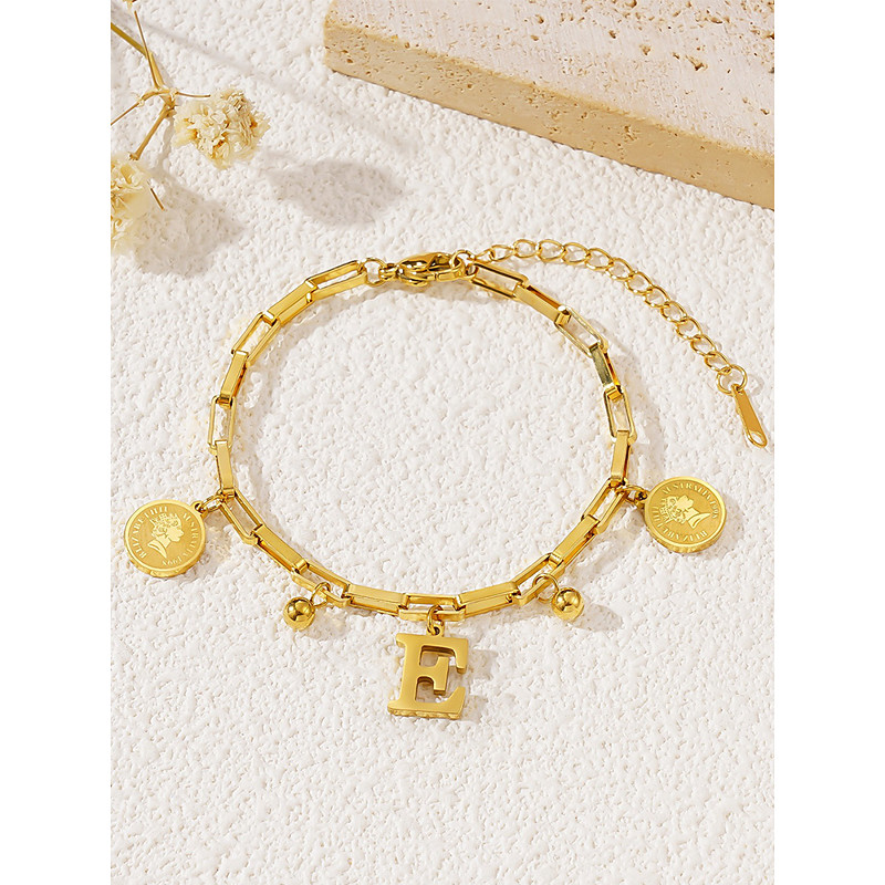 Women's Gold-Plated Alphabet Letter Bracelet with Coin and Ball Charms, Adjustable Chain, Stylish Christmas Gift for Her, Personalised Jewelry Accessory