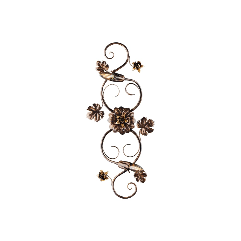 Plafoniera 2 luci arte povera con foglie in ferro marrone e oro
