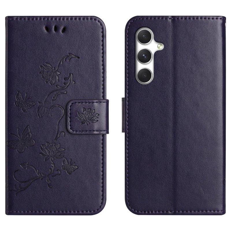 Plånboksfodral för Samsung Galaxy S26 Konstläder - Blomma och Fjäril - Mörkgrå