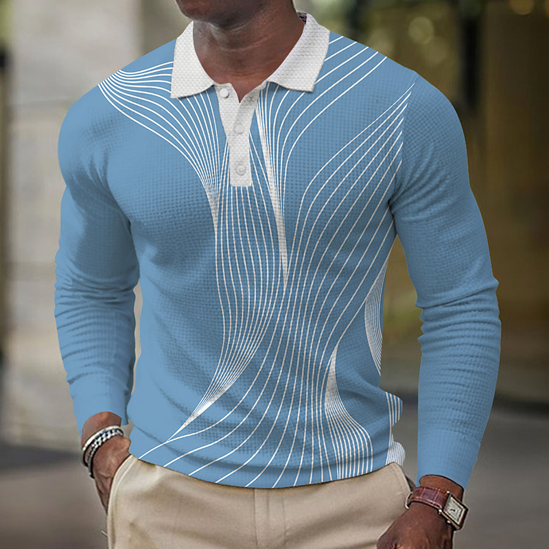 Men's Geometic Line Waffle Polo Shirts Long Sleeve Polo Shirts Collared Shirts Business Casual Business Wear to work Daily Wear Buttons Spring Fall Winter Black Blue Green