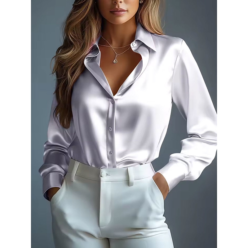 Women's Shirt Dressy Tops Formal Work Shirt Solid Color Plain Elegant Stylish Basic Long Sleeve Collar Party Evening Wear Date Night Outfits White Pink Blue Purple Green Spring Fall Winter