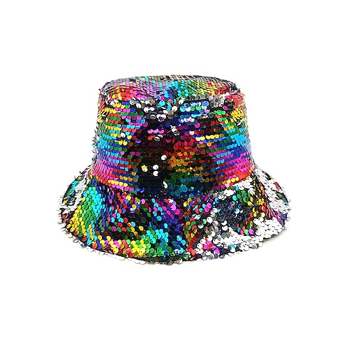Cappello da Mardi Gras a secchiello reversibile in paillettes multicolori per donne - accessorio costume disco lucido per carnevale rave e balli in масchera