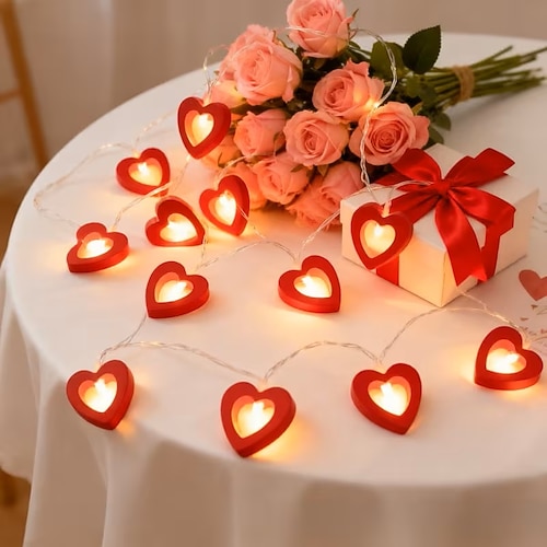 Rote, herzförmige Lichterkette aus Holz mit 10/20 LEDs – ideal für Hochzeiten, Trauungen, Weihnachten, Valentinstag, Silvester und andere festliche Anlässe.