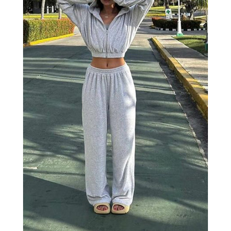 Women's Tracksuit Sweatpants Wide Leg Pants Lace Pocket Solid Colored Clothing Suit Fall Black White Gym Sports Running Windproof Long Sleeve Sport Activewear Stretchy Regular Fit