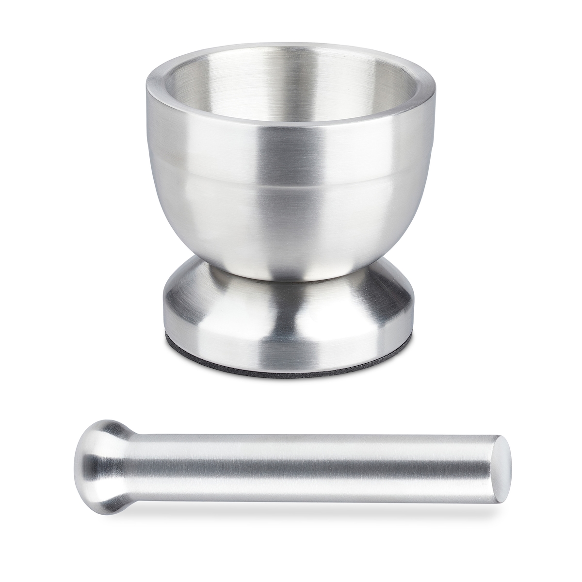 Relaxdays Mörser mit Stößel, aus Edelstahl, mit Deckel, Gewürze, Kräuter, rutschfester Handmörser, Ø 10 cm, 200 ml, grau