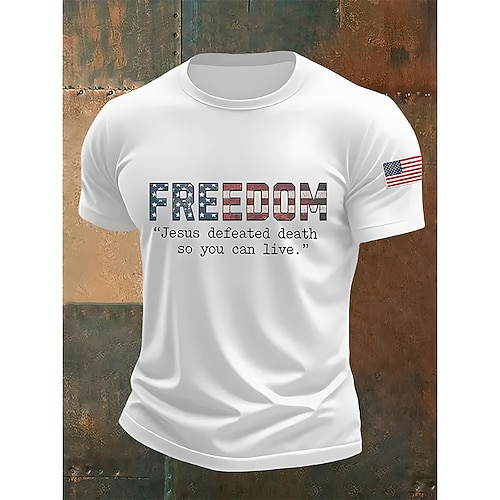 Herren Zitate Sprüche Amerikanische Flagge Kurzarmshirt T-Shirt Kurzarm T-Shirt 3D-Druck Rundhalsausschnitt Hemd Mode Designer Lässig Urlaub Täglich Ferien Schwarz Weiß Rote Ganzjahres Bekleidung