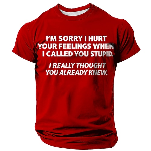Herren Sarkastisch Lustiger Slang T Shirt Kurzarm T-Shirt 3D-Druck Rundhalsausschnitt Hemd Mode Täglich Straße Täglich Schwarz Weiß Rote Sommer Frühling Bekleidung S M L XL XXL XXXL