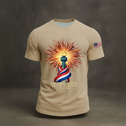 Amerikas 250. Jahrestag Herren Grafik Amerikanische US-Flagge Fackel T Shirt Kurzarmshirt T-Shirt Kurzarm T-Shirt 3D-Druck Rundhalsausschnitt Hemd Mode Täglich Basic Täglich Urlaub Straße