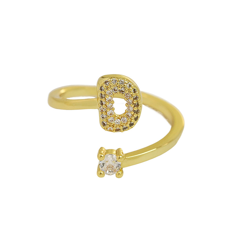Gold Initial Ring for Women - Adjustable A-Z Alphabet Ring with Beads or Crystals - Personalized Name Jewelry for Everyday Wear, Graduation Season Gift or Special Occasion