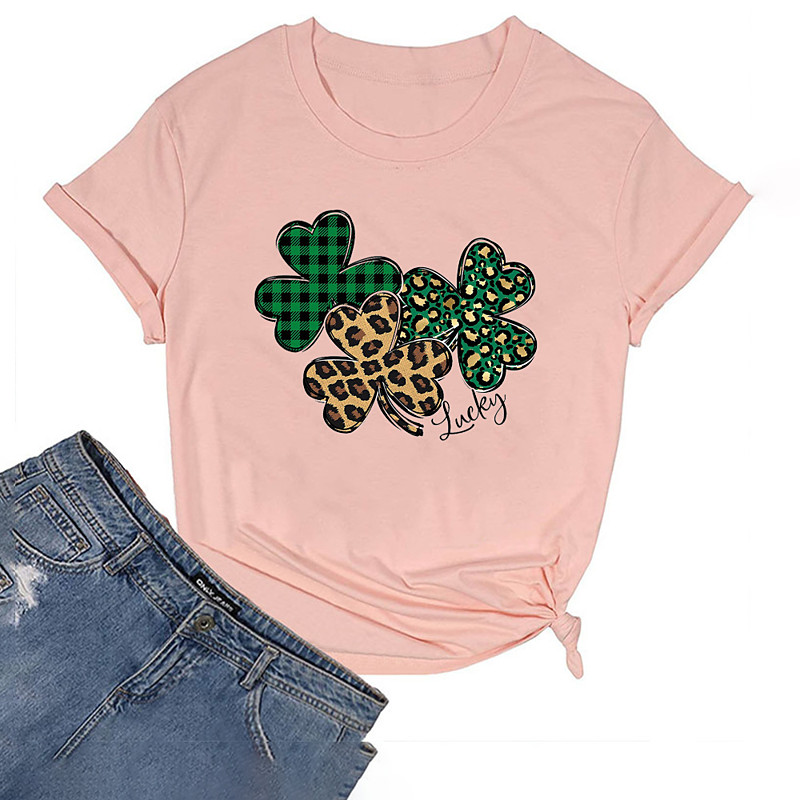 St. Paddy's Day St. Patrick's Day Women's T Shirt Shamrock Fashion Short Sleeve Round Neck Regular Tops Casual St.Patrick's Day Print Black White Pink Orange Green Spring Summer