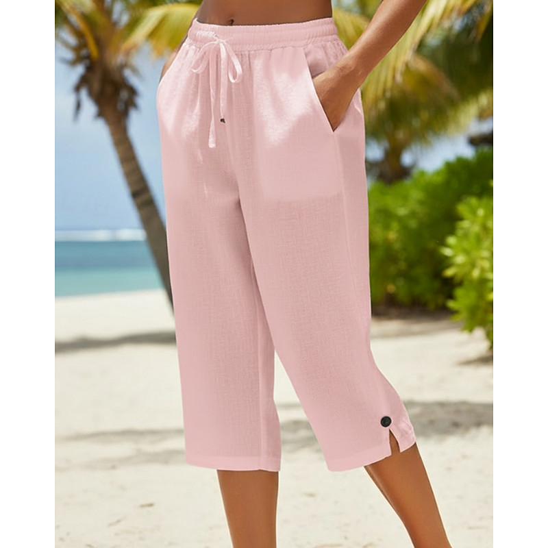 Women's Capri Pants Chinos Streetwear Basic Casual Calf-Length Medium Waist Plain Drawstring Pocket Comfy Stretchy Daily Outdoor Street Blue White Pink Orange Summer Spring Loose Fit