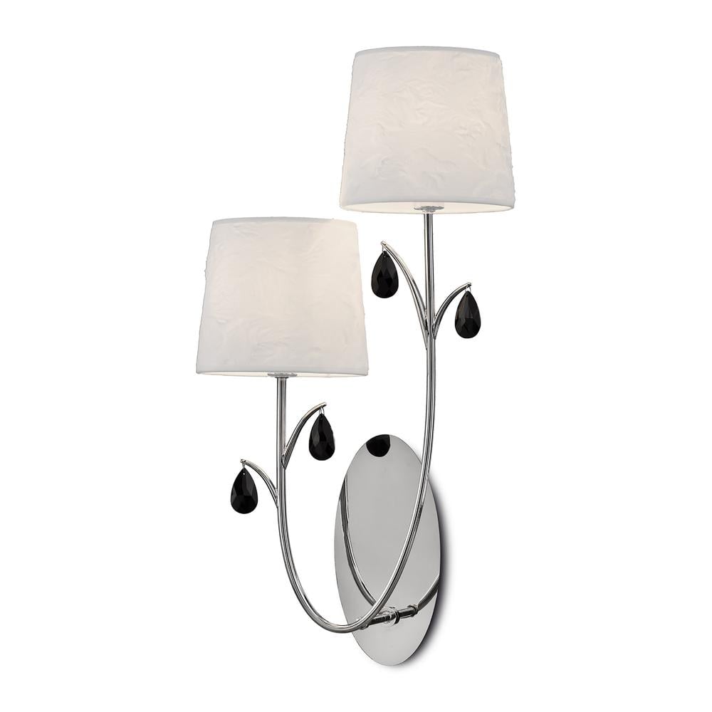 Andrea Wall Light 2 x E14 (Max 20W) Polished Chrome White Shades Black Crystal Droplets Mantra