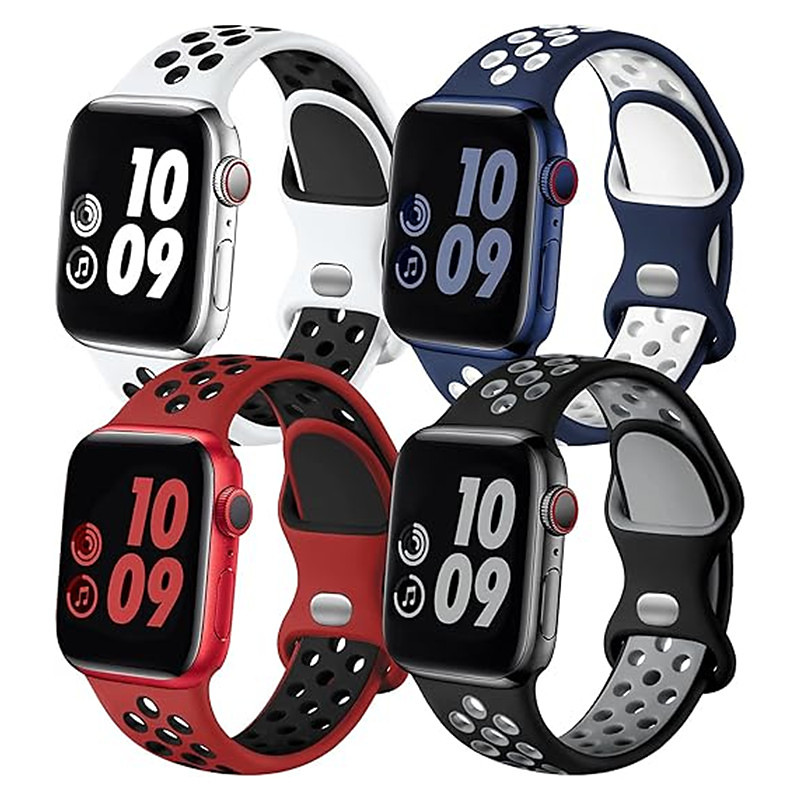 4 Pack Sport Band Modern Buckle Sport Loop Compatible with Apple Watch band 38mm 40mm 41mm 42mm 44mm 45mm 49mm Two Tone Adjustable Silicone Strap Replacement Wristband for iwatch Ultra 3 2 Series 11