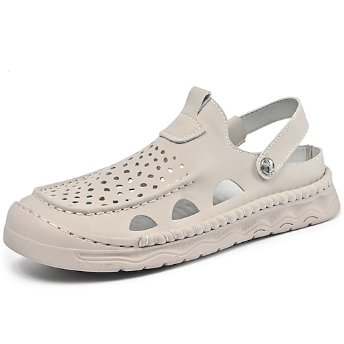 sandali bianchi in similpelle da uomo, scarpe slip-on traspiranti per le vacanze al mare o le uscite informali