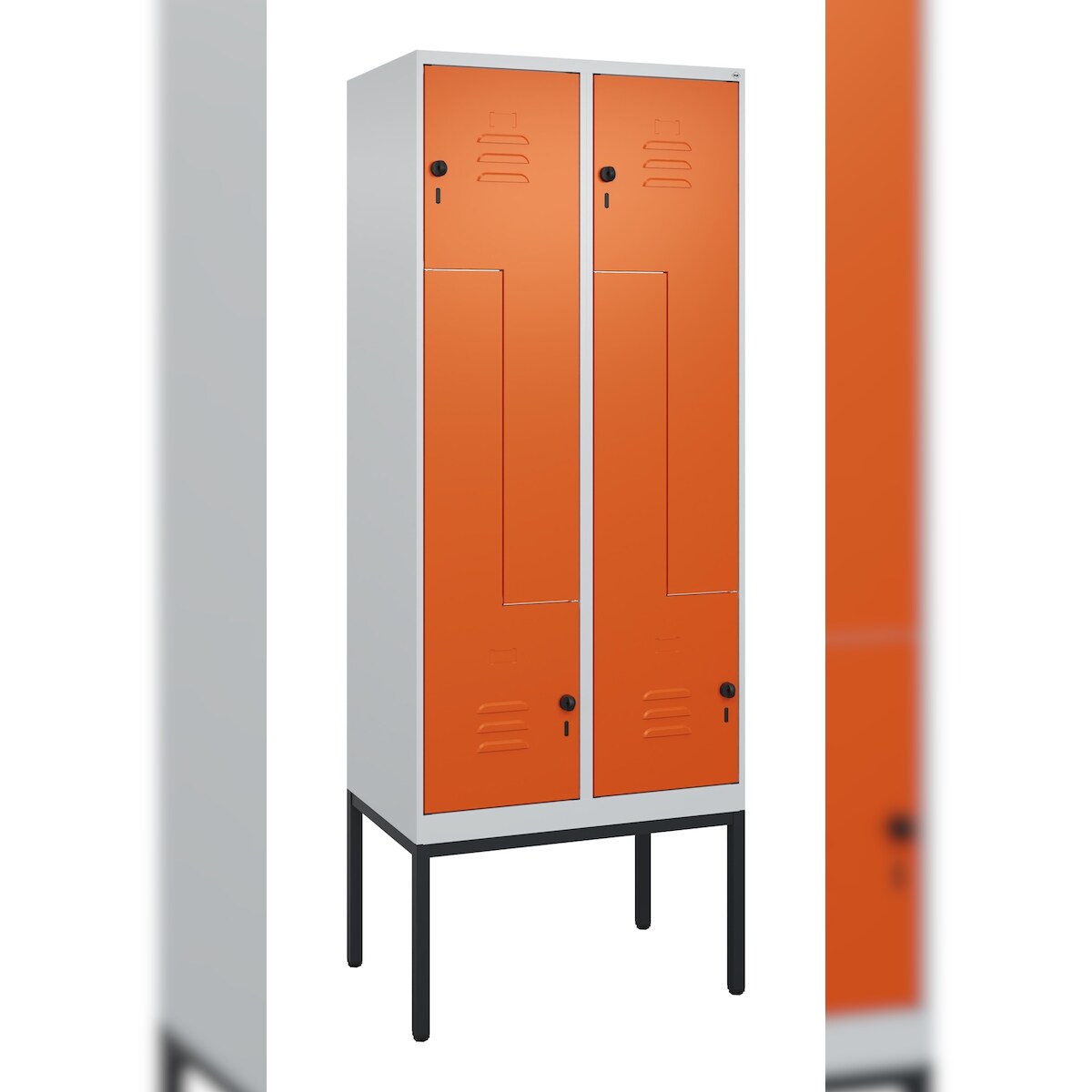 C+P Z-Spind Classic PLUS, Gestell, 4 Abteile, HxBxT 212x80x50cm, Sicherheitsdrehriegel, Hellgrau/Reinorange von PROREGAL