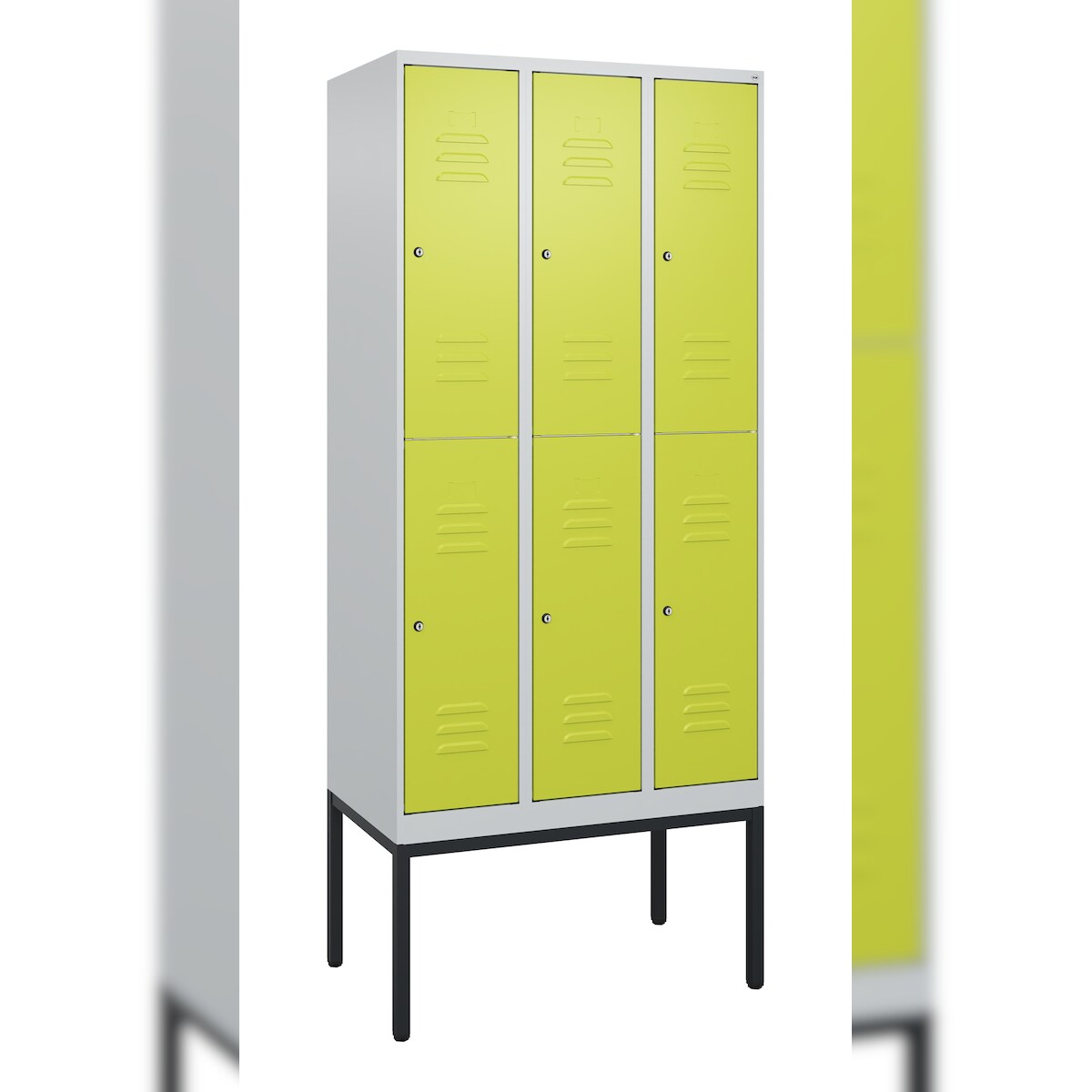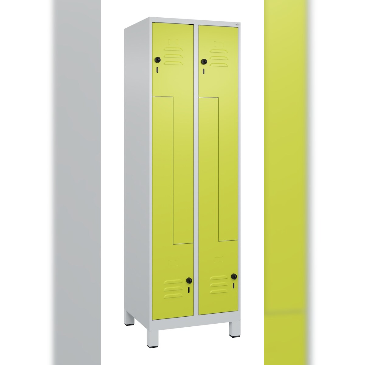 C+P Z-Spind Classic PLUS, Füßen, 4 Abteile, HxBxT 195x60x50cm, Sicherheitsdrehriegel, Hellgrau/Clowngrün von PROREGAL