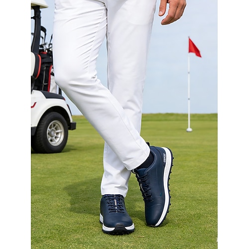 scarpe da golf da uomo bianche e nere con design ventilato, ideali per campi da golf e sport all'aria aperta