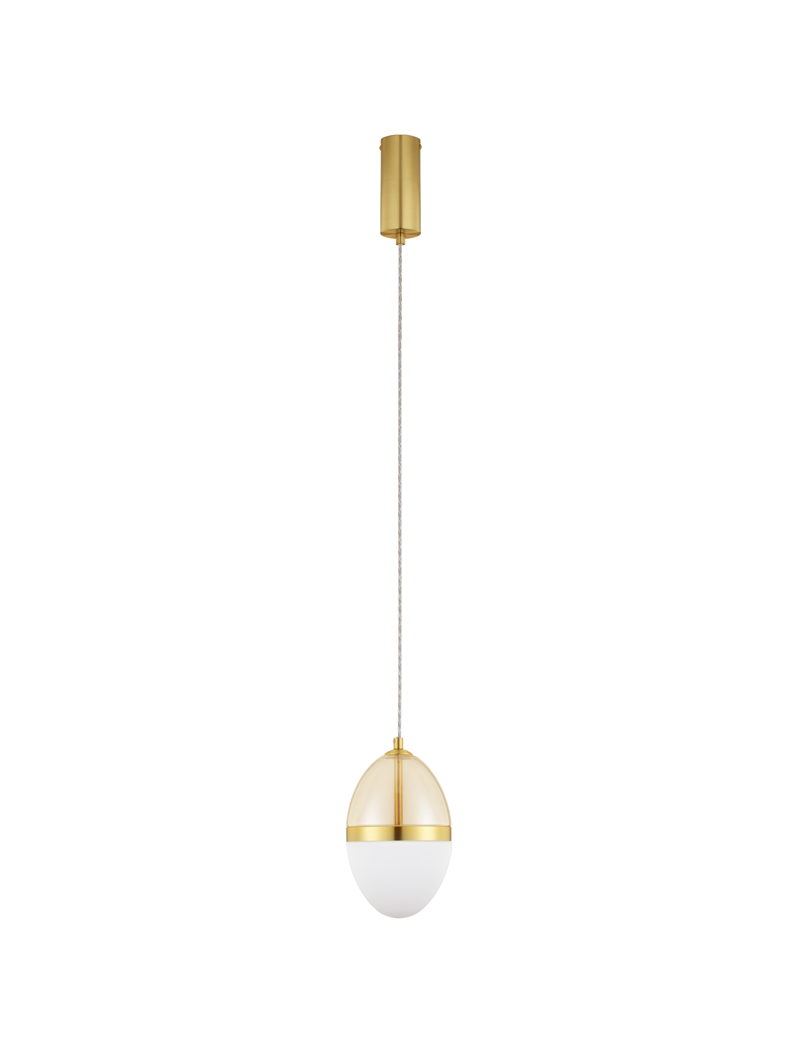 Nova Luce Egna - hanglamp - Ø 15 x 120 cm - 20W LED incl. - opaal, cognacglas en goud