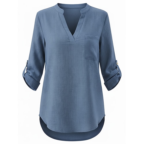 Per donna Top estivi Blusa Top Eleganti Arricciato Patchwork Tasca Tinta unica Semplice Elegante Vintage Signore Manica 3/4 Colletto a Camicia Top Regolari Quotidiano Lavoro Uscire Blu Giallo Viola