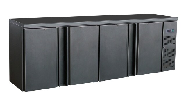 Barkühlschrank TOKEH | 4x abschließbare Tür + LED | 698 Liter, HxBxT 86x254,2x51,3cm | 0/+10°C | Schwarz + CHEFGASTRO Geschirrtuch