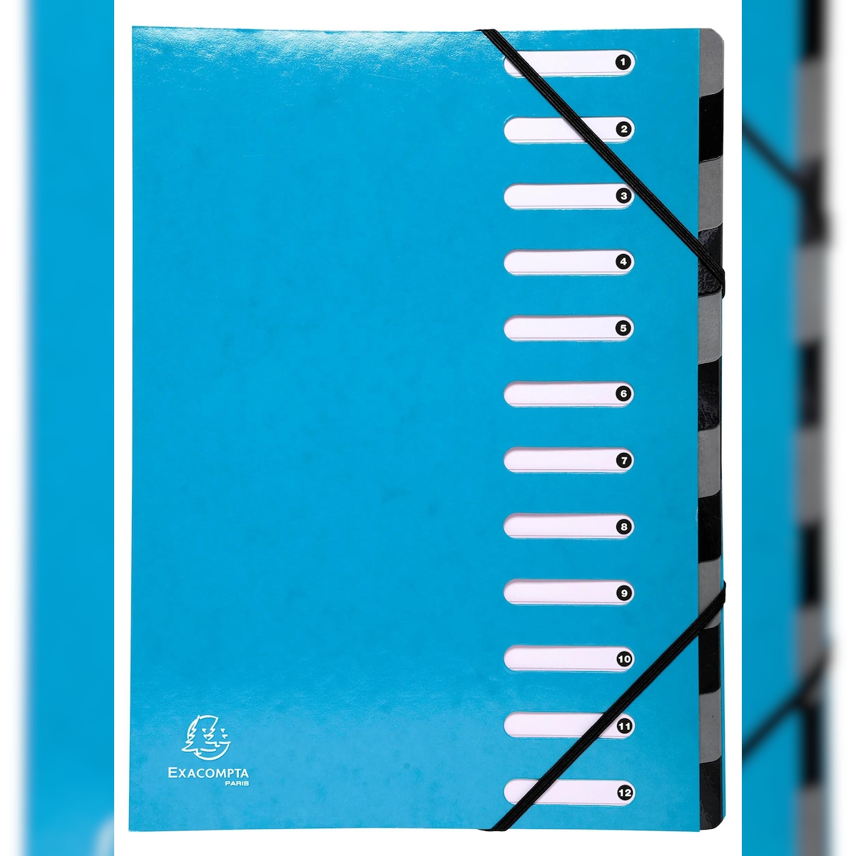 Exacompta 53927E 6x Ordnungsmappe Harmonika mit dehnbarem Rücken aus Colorspan-Karton, 12 Fächer - Iderama - Hellblau