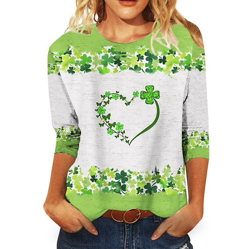 St. Paddy's Day St. Patrick's Day Women's T Shirt Shamrock Fashion Long Sleeve Round Neck Regular Tops Casual St.Patrick's Day Print Grass Green White Light Green Army Green Dark Green Spring Fall