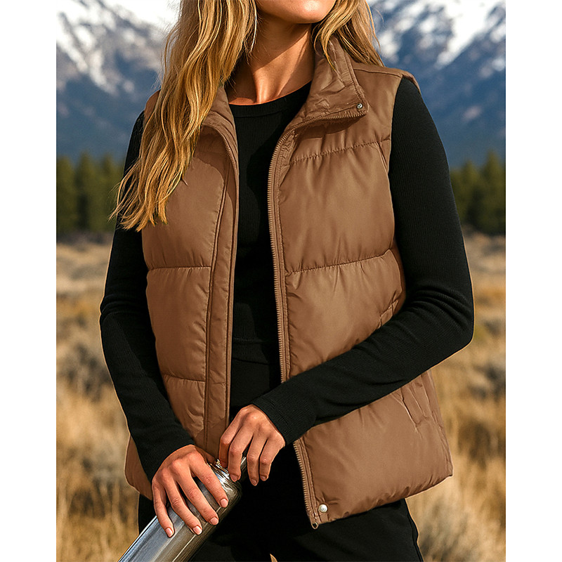 Men's Puffer Vest Daily Casual Spring Fall Pocket Polyester Comfortable Solid Color Zipper Stand Collar Black Blue Khaki Vest