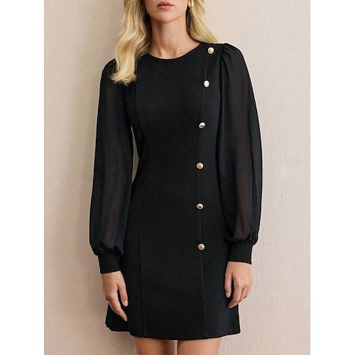 Per donna Mini Abito Tubino Casual Quotidiano Vestibilità regolare Semplice Manica Lunga Girocollo Nero Vino Primavera Autunno