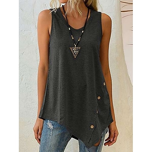 Per donna Canotta a canotta Tinta unica Quotidiano Elegante Essenziale Senza Maniche Girocollo Top lunghi Quotidiano Bottoni Nero Bianco Vino Grigio Estate Primavera