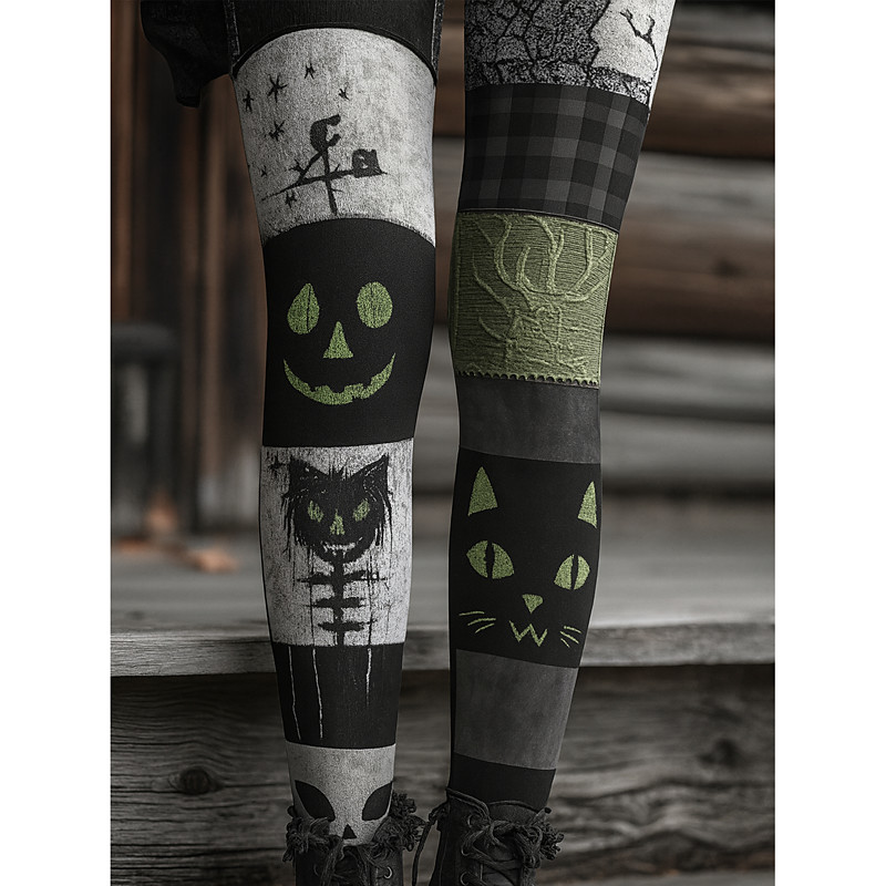 Women's Leggings Vacation Vintage Ethnic Style Ankle-Length High WaistPantsHalloween Graphic Cat 3D Print Quick Dry Breathability Soft Stretchy Outdoor Home Causal Black White Green Fall Regular Fit