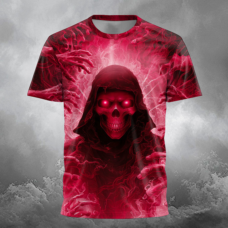 Halloween Men's Grim Reaper 3D Reaper T Shirt Short Sleeve T shirt 3D Print Crew Neck Shirt Exaggerated Designer Horror Party Street Holiday Red Blue Green Summer Spring All Seasons Clothing Apparel
