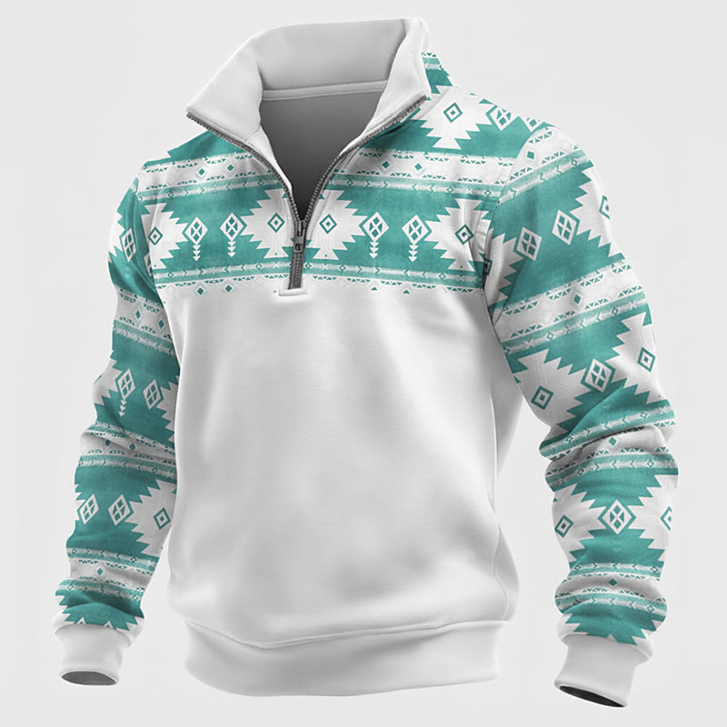 Men's Tribal Sweatshirt Ethnic Vintage Retro Stand Collar Outdoor Work Gift Blue Lake blue Yellow Red Zipper Fall Winter Designer S M L XL XXL XXXL