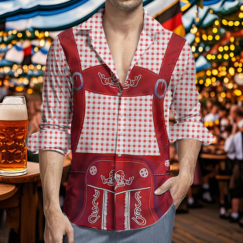 Oktoberfest Shirt Lederhosen Shirt Trachten Shirt Beer Costume Check Pattern Short Sleeve Shirt Bavarian German Alpine Wiesn Party Beer Festival Carnival Traditional Style Cloth
