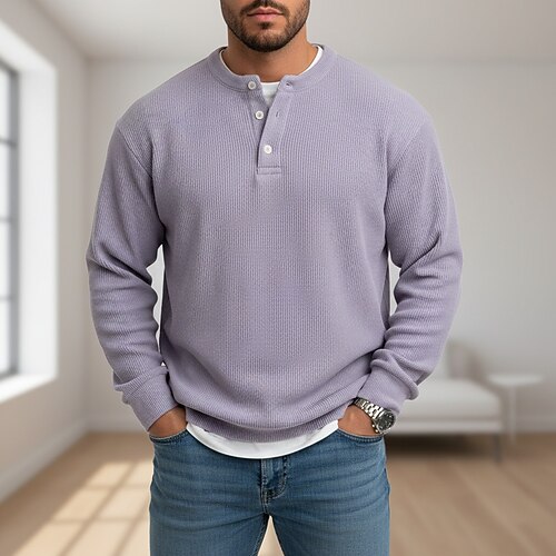 Per uomo Camicia di Velluto a Coste Maglia Henley Maglietta Manica Lunga Tinta unica Semplice Moda Designer Casual Cardigan con Bottoni Caldo Henley Casuale Quotidiano All'aperto Autunno Inverno