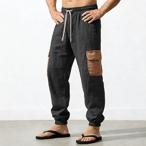 Per uomo Pantaloni Cargo Pantaloni di Lino Pantaloni Pantaloni Estivi Coulisse Elastico in vita Multi-tasche Semplice Comodità Traspirante Lunghezza intera Casuale Quotidiano Ferie Vacanza Moda Nero
