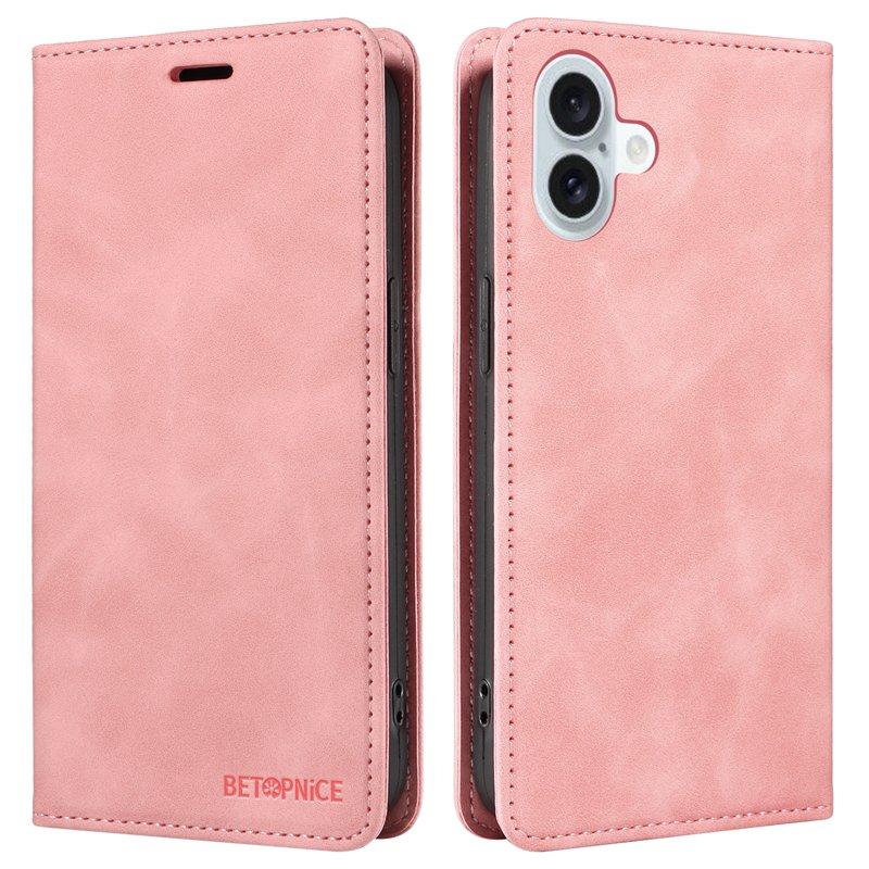BETOPNICE 003 iPhone 16 Plus Plånboksfodral RFID Blocking Konstläder - Rosa