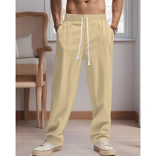 Per uomo Pantaloni di Lino Pantaloni Pantaloni Estivi Pantaloni da Spiaggia Tasca Coulisse Elastico in vita Semplice Comodità Traspirante Vacanza Quotidiano Ferie Hawaiano Boho Beige