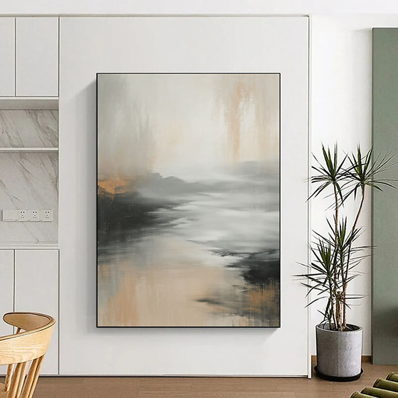 Gray Sky Cloud Abstract Wall Art Minimalist Landscape Painting Modern Acrylic Painting on Canvas Large Wall Art Bedroom Living Room Painting