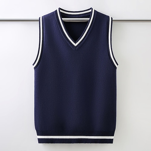 Kinder Jungen Pullover Farbblock Ärmellos V-Ausschnitt Outdoor Mode Marineblau Herbst Kleidung 4-12 Jahre