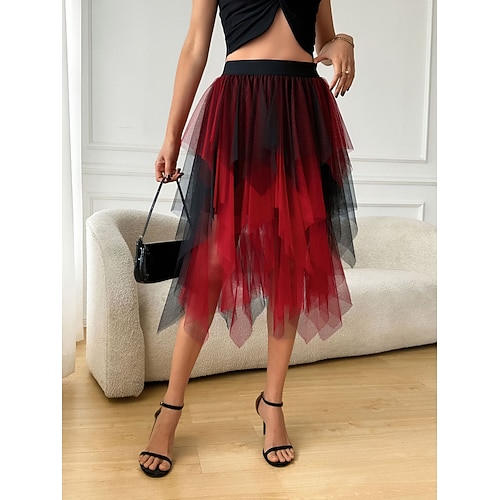 Per donna Gonna da vacanza Elegante Moda Carino Casual Midi Vita media Gonne Blocco di colori Elastico in vita Orlo irregolare Stratificato Micro-elastico Quotidiano Vacanza Lilla Bianco Rosa Rosso