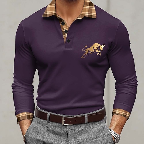 Herren Tiermotiv Polo Langarm Polo-Shirts Revers Business-Casual Outdoor Athleisure Alltagskleidung 3D-Druck Knöpfe Frühling Herbst Blau Schwarz Rote