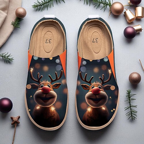 scarpe da viaggio in tela con punta larga da donna e motivo renna: graziose scarpe da passeggio natalizie, perfette per i viaggi delle vacanze e per lo streetwear invernale