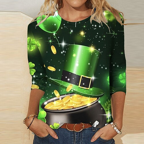 Giorno di San Patrizio Festa di San Patrizio Per donna Maglietta Trifoglio Moda Manica Lunga Girocollo Top Regolari Casuale Giorno di San Patrizio Stampato Nero Bianco Verde chiaro Rosso Verde