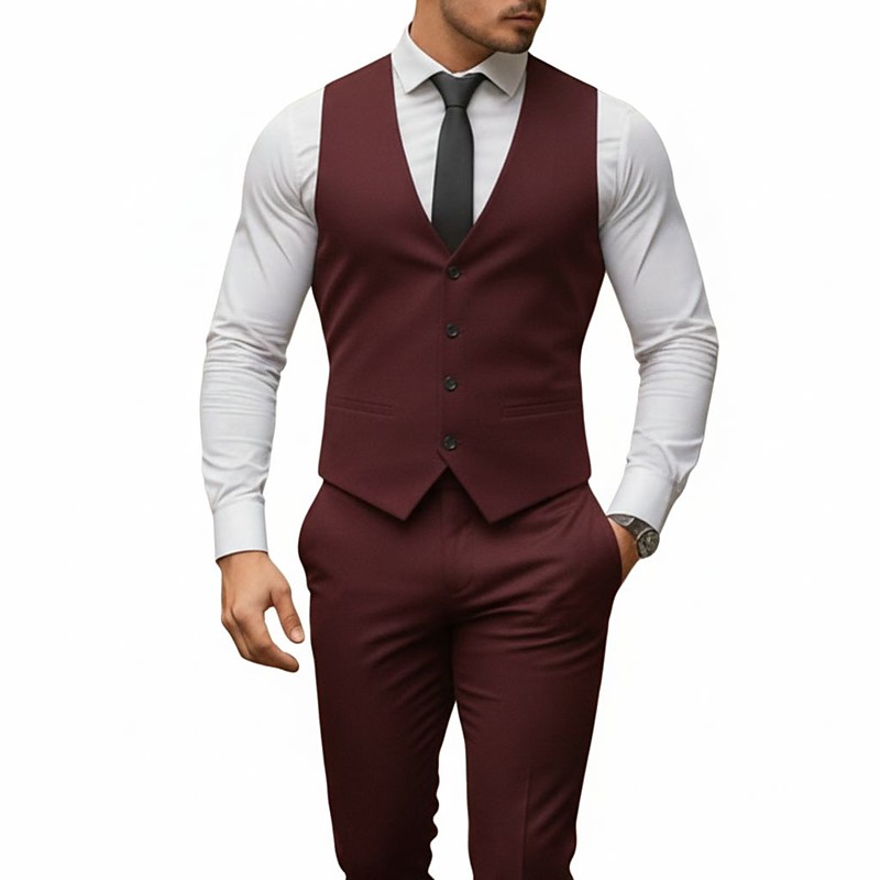 Men's Prom Wedding Suits Black Red Business Formal Solid Colored Standard Fit 3 Piece Single Breasted One-button