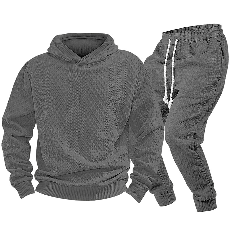 Men's Hoodie Tracksuit Set Hoodie Daily Outdoor Vacation Athleisure Jacquard Plain Black White Navy Blue Activewear Sports Fashion Fall