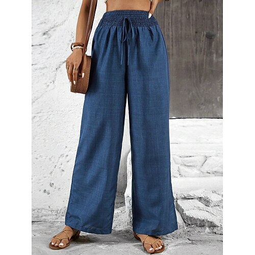 Per donna Pantaloni Pantaloni casual Dritto Vacanza Moda Streetwear Lunghezza intera Vita Alta Semplice Elastico in vita Confortevole Inelastico Quotidiano Vacanza Streetwear Blu Nero Rosso Marrone